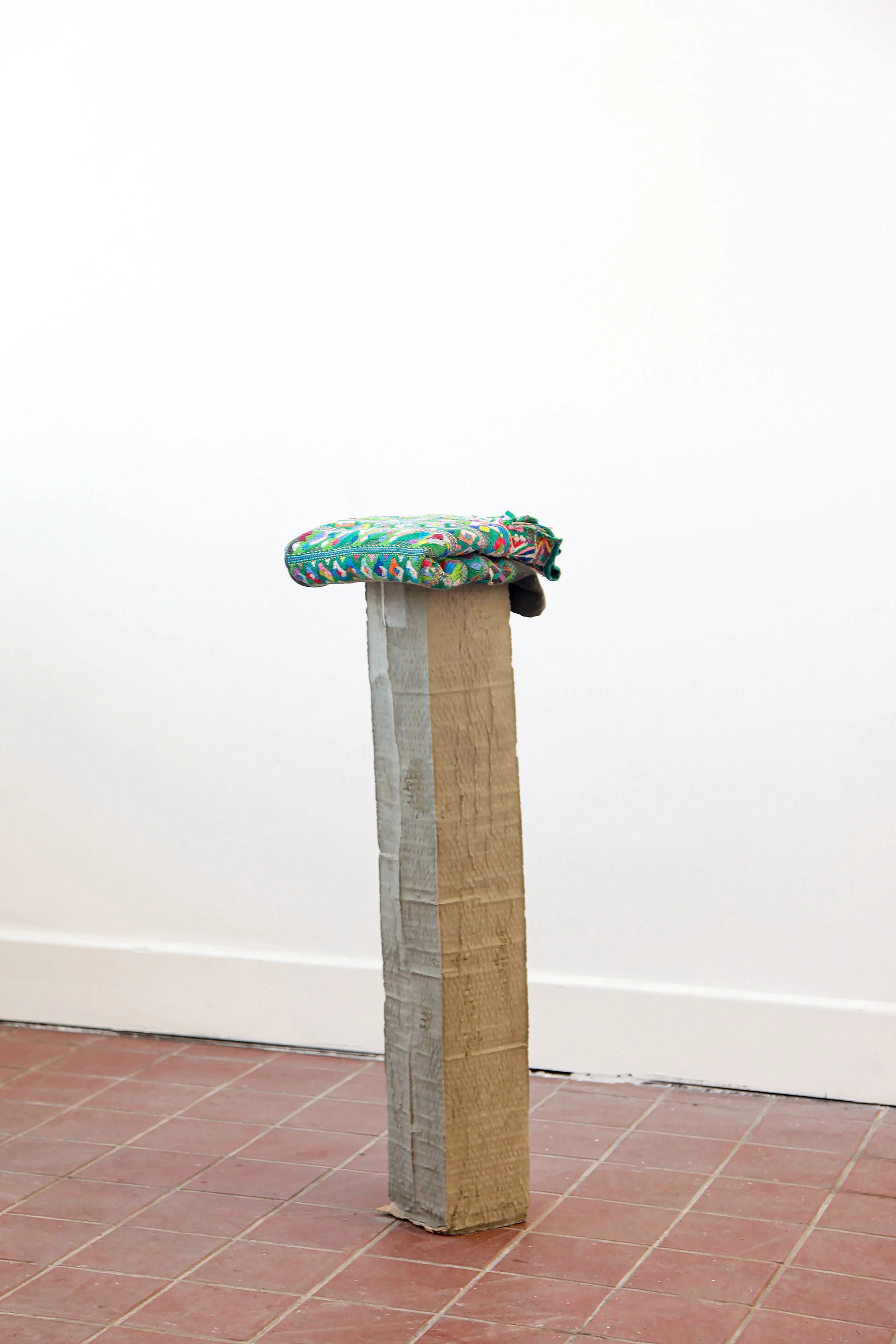 The Small of Her Lower Back explores how grieving, monument, and death are found through & within commonplace hardscape materials. By working through my own historical infatuation with grittiness and material labor, this exhibition offers up a conversation around how to make space for grief in everyday occurrences. Through the poetic materiality behind the clothes worn and habits projected by my late grandmother, Rita Gay, prior to her passing, combined with the artificial and sterile use of concrete/rebar/and synthetic fabric, this work demonstrates ways in which the viewer can connect with and find solace in these unconventionally empathetic materials.