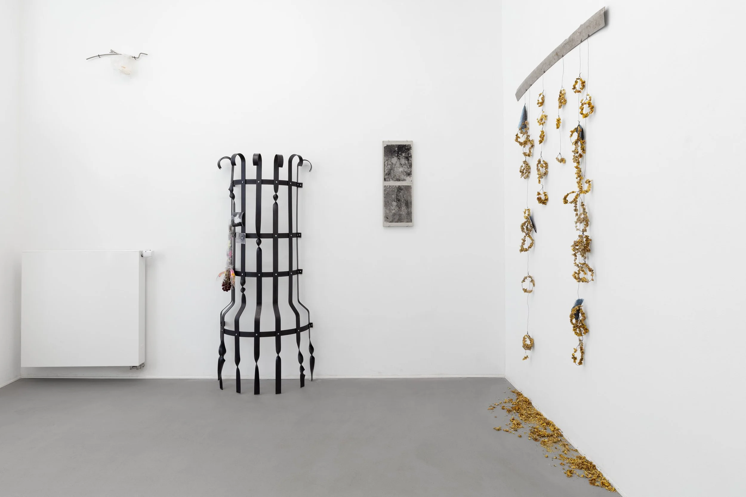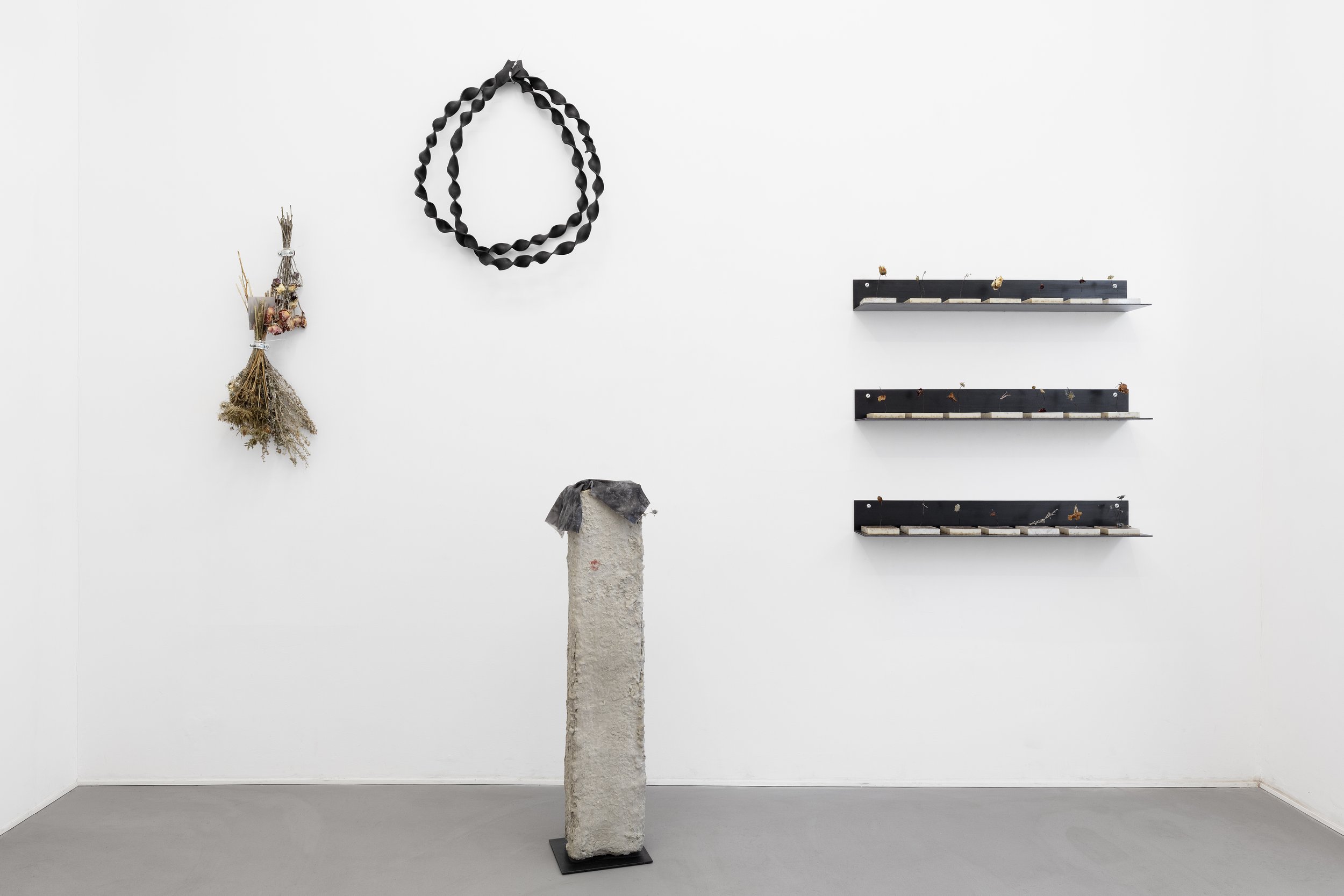 “Through locational specificity and ritual, Theobald creates an architecture of feeling where infrastructure supports delicate wisps of meaning between the anguish and romance found in a season of waiting. Delicate, Berlin-specific interventions of rule govern our navigation through found (zum Verschenken) materials and deteriorating, hyper-sentimentalized fragments of the artist’s romanticized daily life. Theobald takes on a season of ritual where the immediate environment becomes a mirror to our intrapersonal life.”